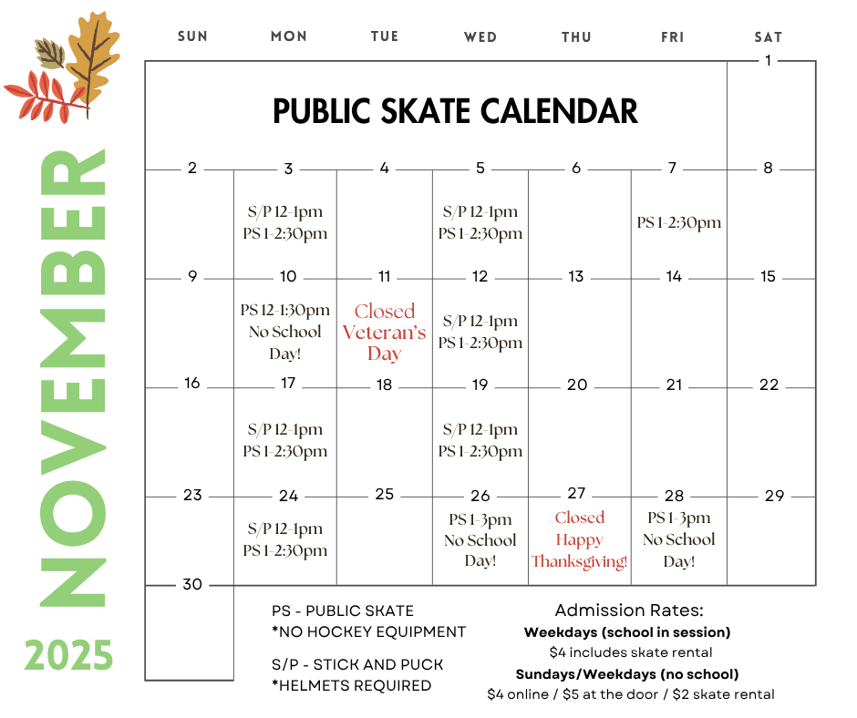 In addition, the arena supports Mites hockey, Learn to Skate lessons, public skate and events like Rock on Ice.