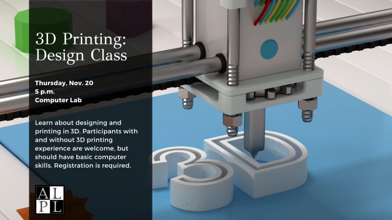Learn about designing and printing in 3D. Participants will use Tinkercad to create and customize designs and print them with the library’s 3D printer. Participants with and without 3D printing experience are welcome, but should have basic computer skills. Adults and teens are welcome to attend; tweens can attend with a caregiver. Registration is required.