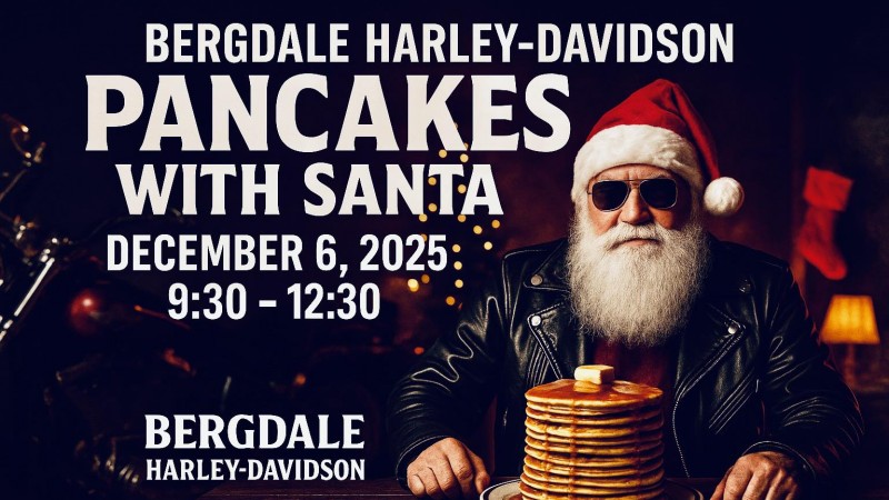 Add to Calendar Saturday, December 6, 2025 9:30 am 12/06/2025 12:30 pm America/New_York Pancakes with Santa Santa’s trading in his sleigh for a Harley and serving up stacks of pancakes!Bring the family, enjoy breakfast, and get…
