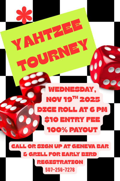 Pre-Registration (Recommended): Want to guarantee your spot at the table? Call Geneva Bar at 507-256-7278 to sign up ahead of time!