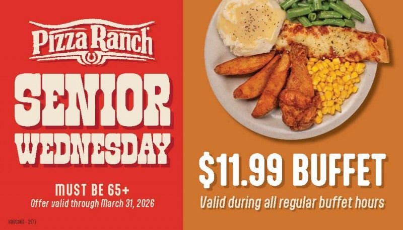 Every Wednesday if you are 65+ years old, you can ask for our special EXTRA Senior Discount (only $11.99) on Senior Day! Offer is valid during regular Buffet hours.*Limited time offer* Location: Pizza Ranch 2430 N Bridge Ave Albert Lea MN 56007