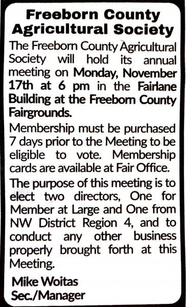Annual Meeting Notice Location: Freeborn County Fairgrounds 1031 Bridge Ave Albert Lea MN 56007 USA